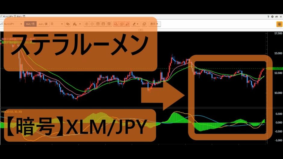 今回のチャートは暗号のステラルーメン/日本円(XLM/JPY)です。