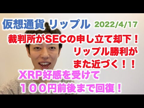 仮想通貨 リップル 裁判所がSECの申し立て却下 リップル勝利がまた近づく!XRP好感を受けて100円前後まで回復! 2022/4/17